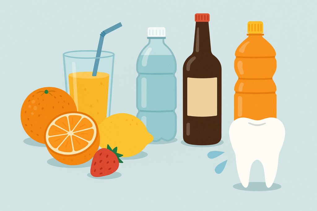 臨床研究でも、酸性飲料の頻回摂取が歯の“酸蝕”リスクを高めることが確認されています。